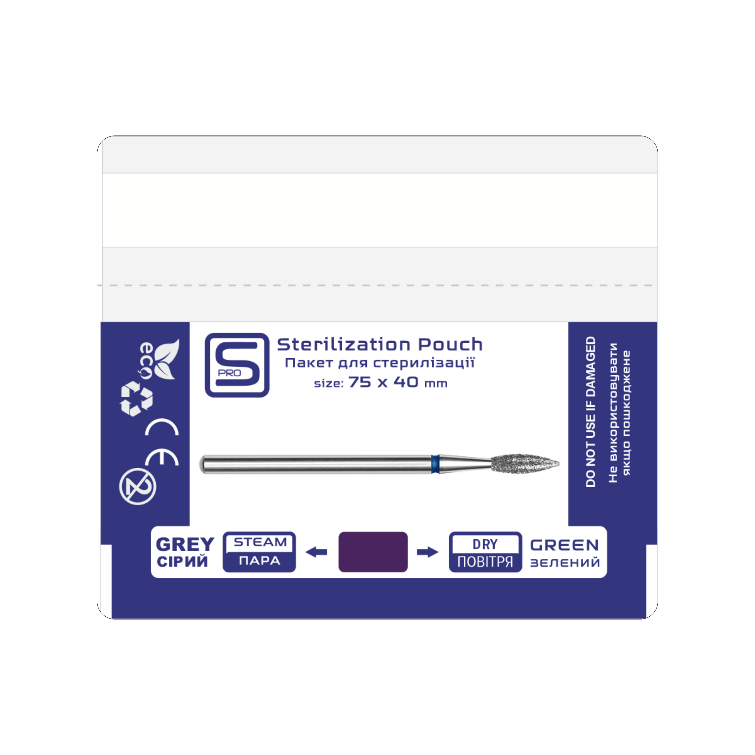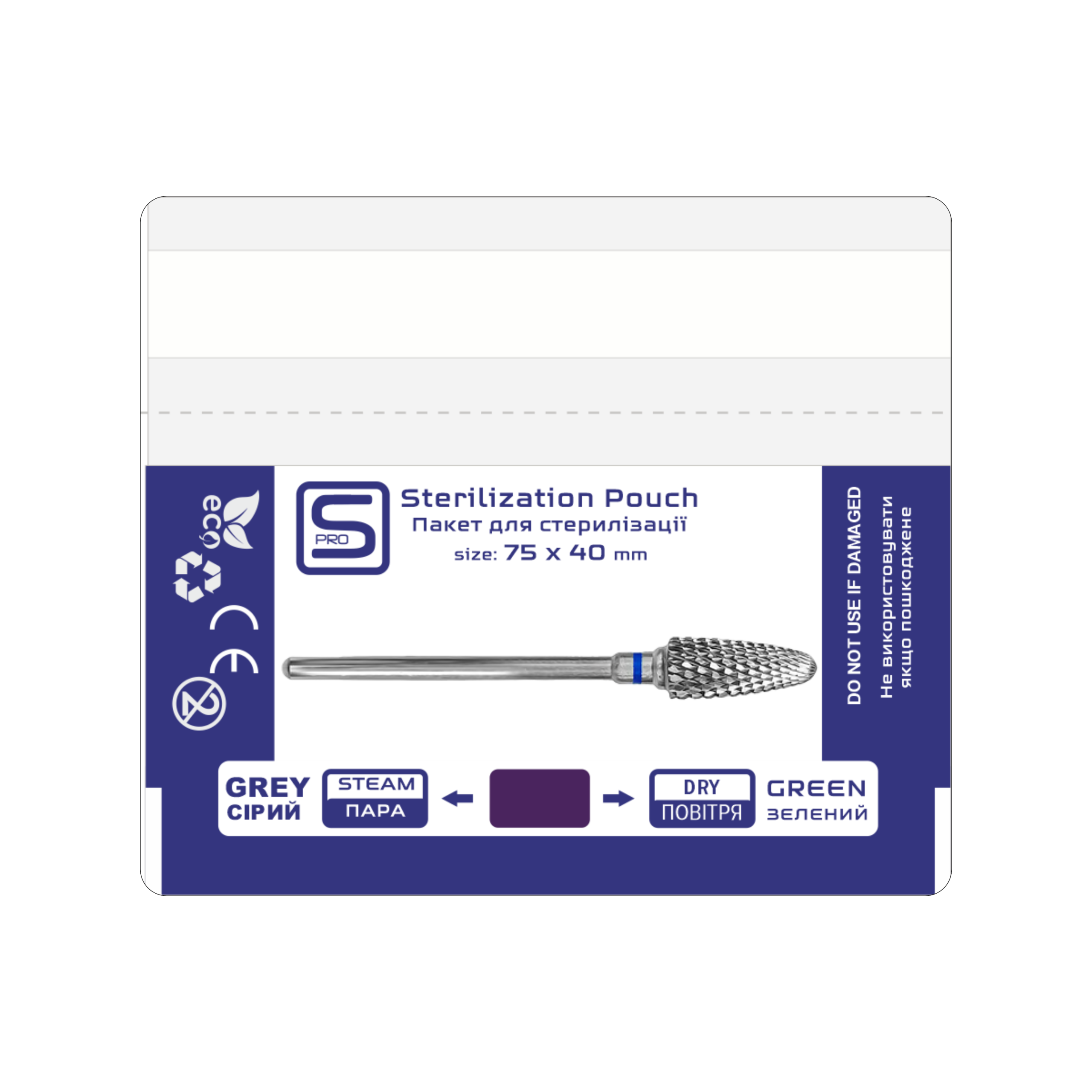 Розмір 75×40 мм ідеально адаптований для індивідуального пакування фрез, борів та насадок, що дозволяє раціонально використовувати місце в сухожарі чи автоклаві. Пакети виготовлені зі щільного паперу та прозорої плівки, які витримують високі температури, а індикатори 4-го класу чітко сигналізують про успішне завершення стерилізації зміною кольору. Обираючи серію CPW, ви демонструєте клієнту не лише стерильність інструменту, а й свій професіоналізм у деталях.