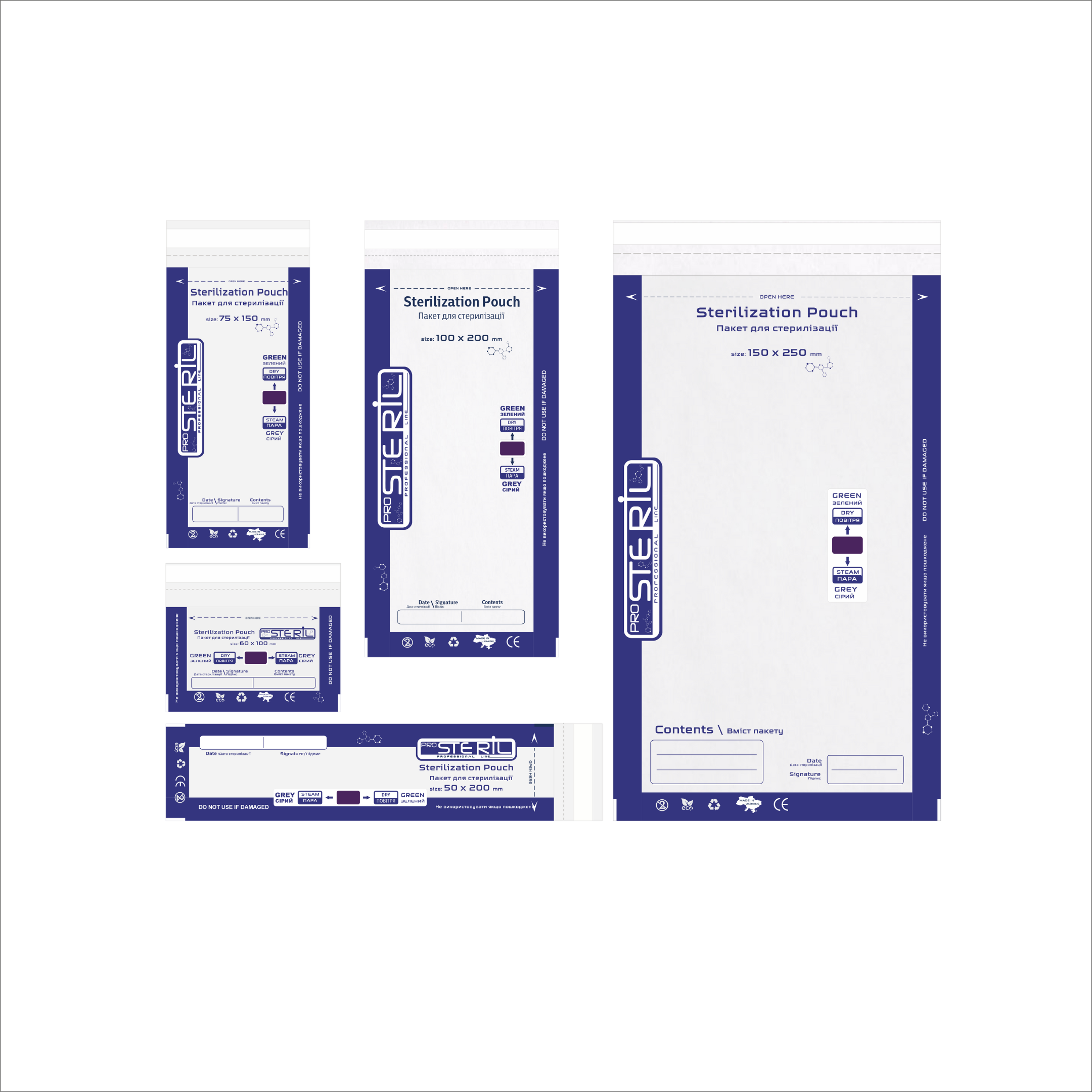 - Виготовлені з міцного медичного паперу білого кольору та високоякісної прозорої плівки, що дозволяє легко ідентифікувати вміст.